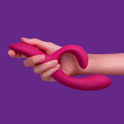 Su diseño es ergonómico para que pueda alcanzarse la estimulación máxima del punto G o el clítoris al tiempo, su mango es muy flexible para que se posicione en el lugar deseado.